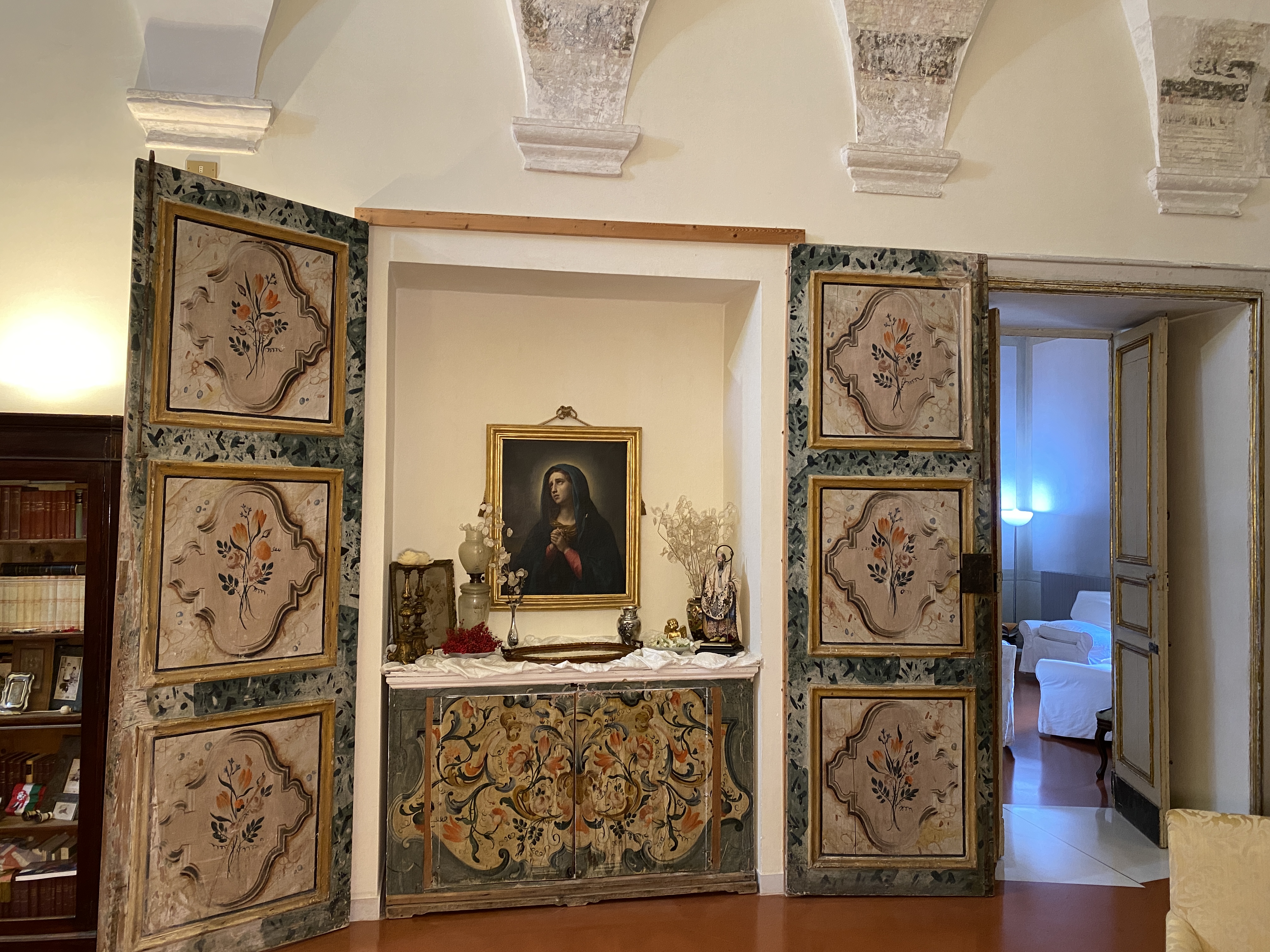 The Firraù suite, which can be accessed from the Palazzo Bernardini library’s hall is located on the 2nd floor of the historical palace and overlooks the Arch of Piazza del Sedile.